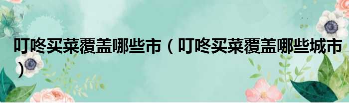 叮咚买菜覆盖哪些市(叮咚买菜覆盖哪些城市)