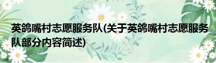 英鸽嘴村志愿服务队(关于英鸽嘴村志愿服务队部分内容简述)