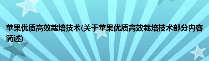 苹果优质高效栽培技术(关于苹果优质高效栽培技术部分内容简述)