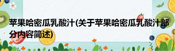 苹果哈密瓜乳酸汁(关于苹果哈密瓜乳酸汁部分内容简述)