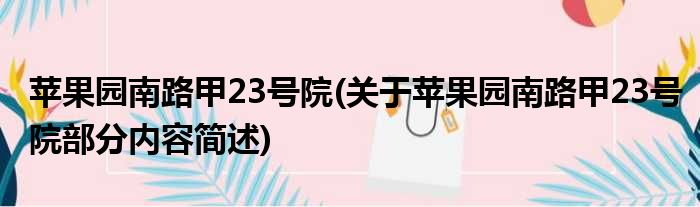 苹果园南路甲23号院(关于苹果园南路甲23号院部分内容简述)