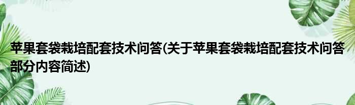 苹果套袋栽培配套技术问答(关于苹果套袋栽培配套技术问答部分内容简述)