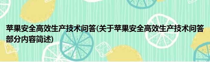 苹果安全高效生产技术问答(关于苹果安全高效生产技术问答部分内容简述)
