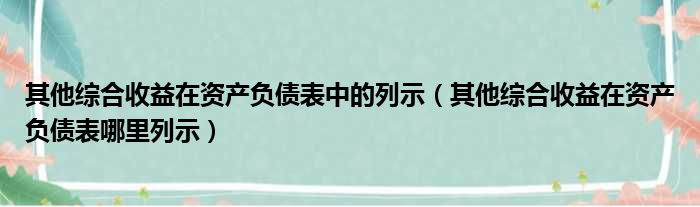 其他综合收益在资产负债表中的列示(其他综合收益在资产负债表哪里列示)