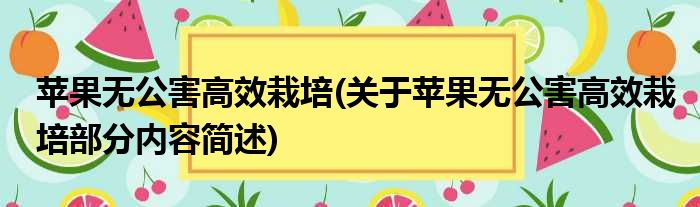 苹果无公害高效栽培(关于苹果无公害高效栽培部分内容简述)