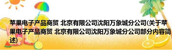 苹果电子产品商贸 北京有限公司沈阳万象城分公司(关于苹果电子产品商贸 北京有限公司沈阳万象城分公司部分内容简述)