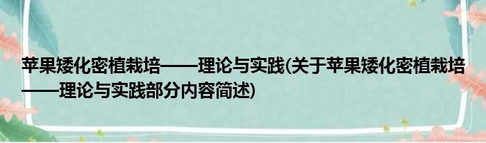 苹果矮化密植栽培——理论与实践(关于苹果矮化密植栽培——理论与实践部分内容简述)