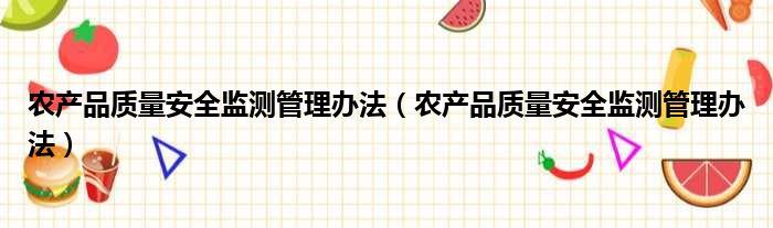 农产品质量安全监测管理办法(农产品质量安全监测管理办法)