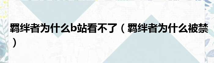 羁绊者为什么b站看不了(羁绊者为什么被禁)