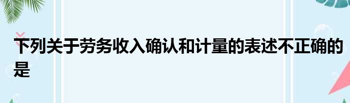 大家好,小活来为大家解答以上的问题。下列关于劳务收入确认和计量的表述不正确的是这个很多人还不知道,现在让我们一起来看看吧!