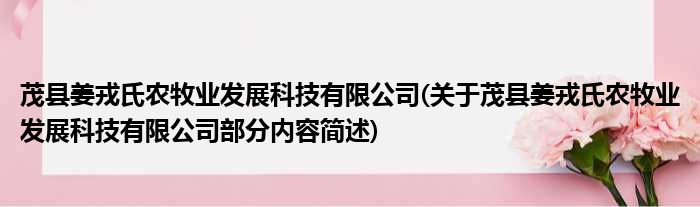茂县姜戎氏农牧业发展科技有限公司(关于茂县姜戎氏农牧业发展科技有限公司部分内容简述)