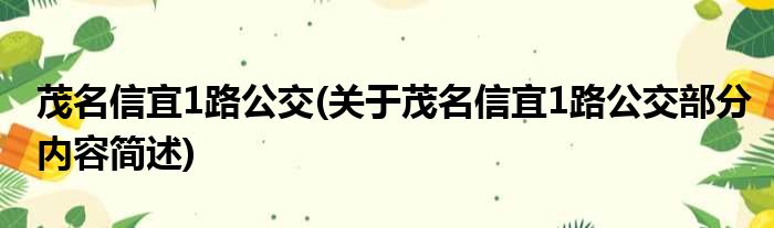 茂名信宜1路公交(关于茂名信宜1路公交部分内容简述)