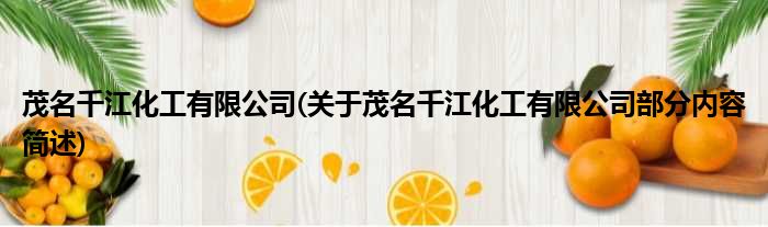 茂名千江化工有限公司(关于茂名千江化工有限公司部分内容简述)