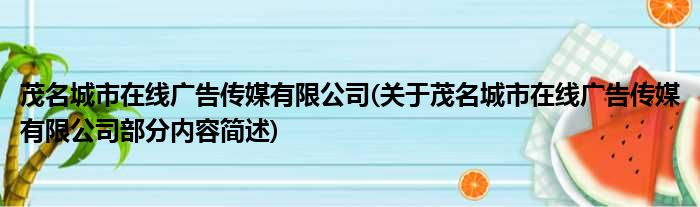 茂名城市在线广告传媒有限公司(关于茂名城市在线广告传媒有限公司部分内容简述)