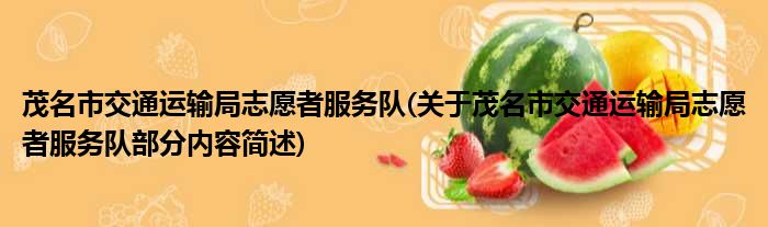 茂名市交通运输局志愿者服务队(关于茂名市交通运输局志愿者服务队部分内容简述)