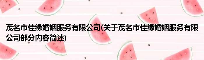茂名市佳缘婚姻服务有限公司(关于茂名市佳缘婚姻服务有限公司部分内容简述)