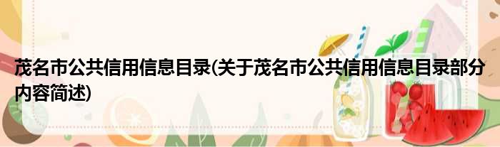茂名市公共信用信息目录(关于茂名市公共信用信息目录部分内容简述)