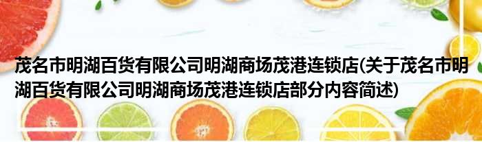 茂名市明湖百货有限公司明湖商场茂港连锁店(关于茂名市明湖百货有限公司明湖商场茂港连锁店部分内容简述)