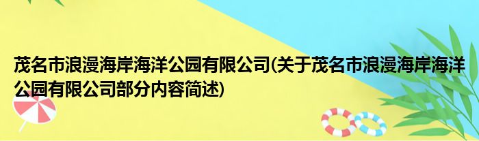 茂名市浪漫海岸海洋公园有限公司(关于茂名市浪漫海岸海洋公园有限公司部分内容简述)