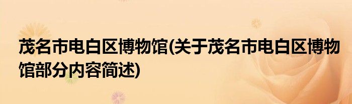 茂名市电白区博物馆(关于茂名市电白区博物馆部分内容简述)