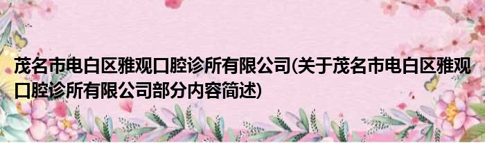 茂名市电白区雅观口腔诊所有限公司(关于茂名市电白区雅观口腔诊所有限公司部分内容简述)