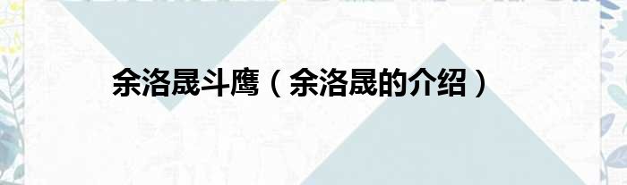 大家好,小活来为大家解答以上的问题。余洛晟斗鹰,余洛晟的介绍这个很多人还不知道,现在让我们一起来看看吧!