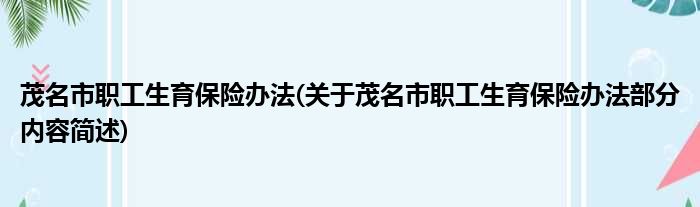 茂名市职工生育保险办法(关于茂名市职工生育保险办法部分内容简述)