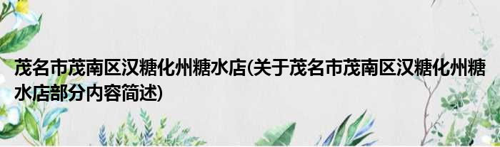 茂名市茂南区汉糖化州糖水店(关于茂名市茂南区汉糖化州糖水店部分内容简述)