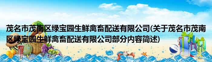 茂名市茂南区绿宝园生鲜禽畜配送有限公司(关于茂名市茂南区绿宝园生鲜禽畜配送有限公司部分内容简述)