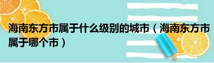 海南东方市属于什么级别的城市(海南东方市属于哪个市)