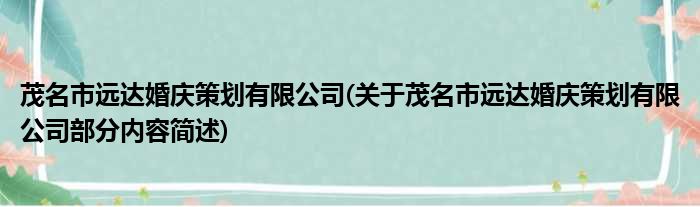 茂名市远达婚庆策划有限公司(关于茂名市远达婚庆策划有限公司部分内容简述)