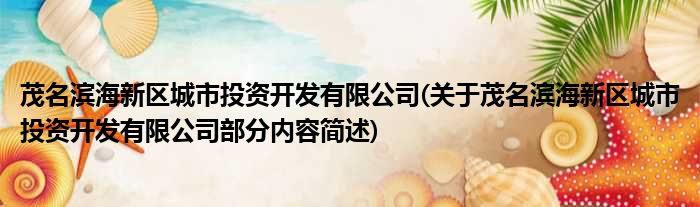 茂名滨海新区城市投资开发有限公司(关于茂名滨海新区城市投资开发有限公司部分内容简述)
