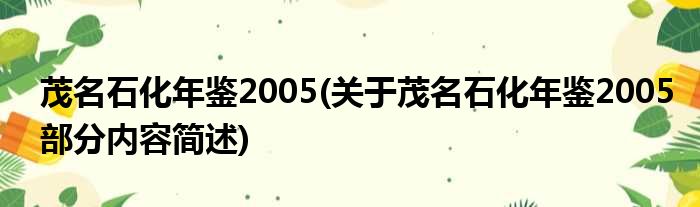 导读 大家好,今天小方来说说一篇关于茂名石化年鉴2005,关于茂名石化年鉴2005部分内容简述的文章,那么现在就为大家来简单介绍下,希望对各位小