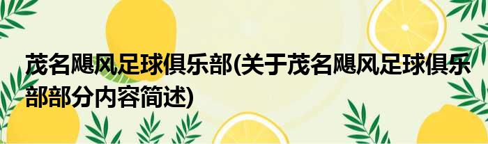 茂名飓风足球俱乐部(关于茂名飓风足球俱乐部部分内容简述)