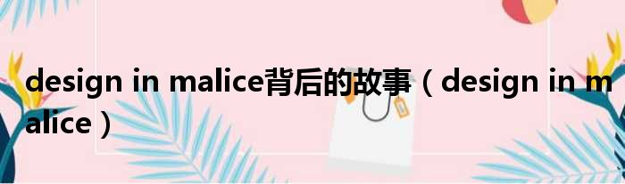 导读 大家好,小活来为大家解答以上的问题。design in malice背后的故事,design in malice这个很多人还不知道,现在让我们一起来看看吧!1、