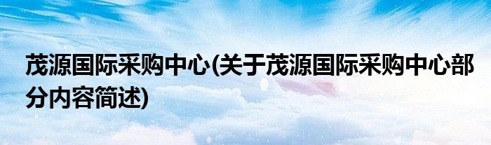 茂源国际采购中心(关于茂源国际采购中心部分内容简述)