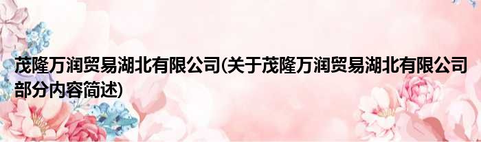 茂隆万润贸易湖北有限公司(关于茂隆万润贸易湖北有限公司部分内容简述)