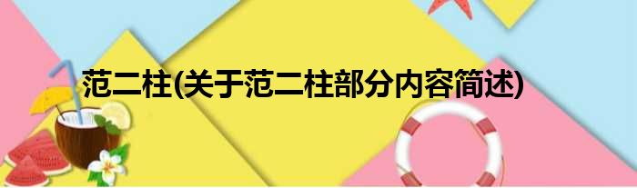 导读 大家好,今天小方来说说一篇关于范二柱,关于范二柱部分内容简述的文章,那么现在就为大家来简单介绍下,希望对各位小伙伴们有所帮助。