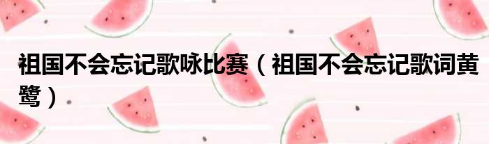 祖国不会忘记歌咏比赛(祖国不会忘记歌词黄鹭)