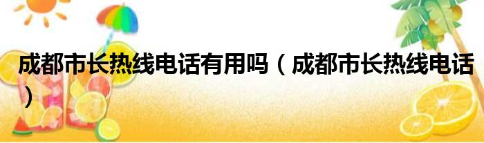 导读 大家好,小活来为大家解答以上的问题。成都市长热线电话有用吗,成都市长热线电话这个很多人还不知道,现在让我们一起来看看吧!1、回答