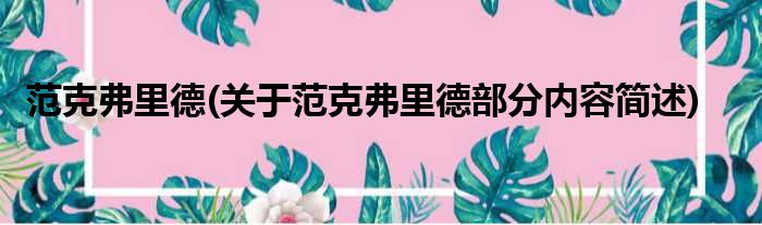 范克弗里德(关于范克弗里德部分内容简述)