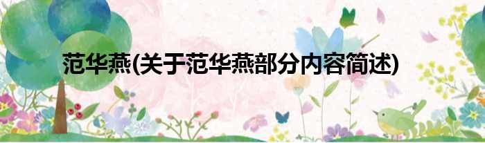 导读 大家好,今天小方来说说一篇关于范华燕,关于范华燕部分内容简述的文章,那么现在就为大家来简单介绍下,希望对各位小伙伴们有所帮助。