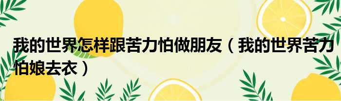 我的世界怎样跟苦力怕做朋友(我的世界苦力怕娘去衣)