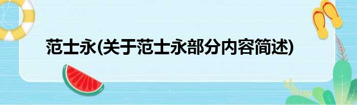 大家好,今天小方来说说一篇关于范士永,关于范士永部分内容简述的文章,那么现在就为大家来简单介绍下,希望对各位小伙伴们有所帮助。