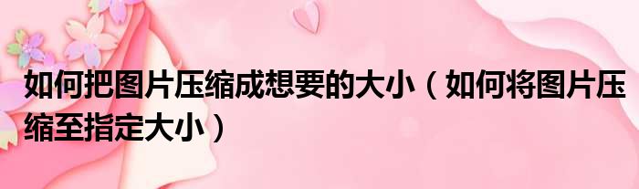如何把图片压缩成想要的大小(如何将图片压缩至指定大小)