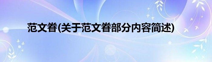 导读 大家好,今天小方来说说一篇关于范文眷,关于范文眷部分内容简述的文章,那么现在就为大家来简单介绍下,希望对各位小伙伴们有所帮助。