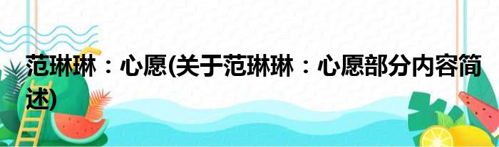 范琳琳:心愿(关于范琳琳:心愿部分内容简述)