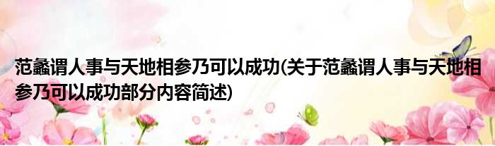 范蠡谓人事与天地相参乃可以成功(关于范蠡谓人事与天地相参乃可以成功部分内容简述)