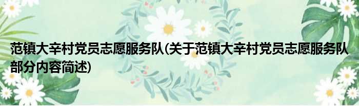 范镇大辛村党员志愿服务队(关于范镇大辛村党员志愿服务队部分内容简述)