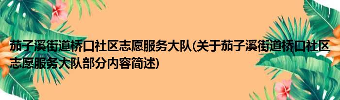 茄子溪街道桥口社区志愿服务大队(关于茄子溪街道桥口社区志愿服务大队部分内容简述)